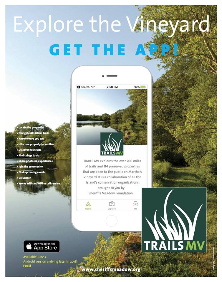 The Sheriff’s Meadow Foundation just released its new Trail MV app for iPhone (Android coming soon), and this is a pretty big deal. The Trail MV app provides you maps and up to date information on all the main public trails on Martha’s Vineyard.