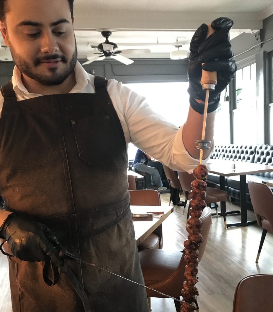 At your table, each person gets a handy card that lets the Gaucho know that you are ready for them. The Gaucho gives you the meat specifics, you then inspect it like a glass of wine, and then you get your tongs ready to grab the pieces as they are sliced off.