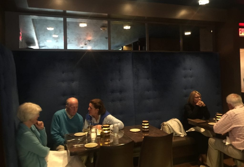 However, the bar has been completely transformed! I am not talking a new paint job, I mean it’s all new! It took a bit for me to adjust to all the changes. On the left of the bar, the wall is lined with banquette seating. Rich deep blue floor to ceiling seating. It’s incredible, and the corner table is sure to become one of the most coveted tables of the season.