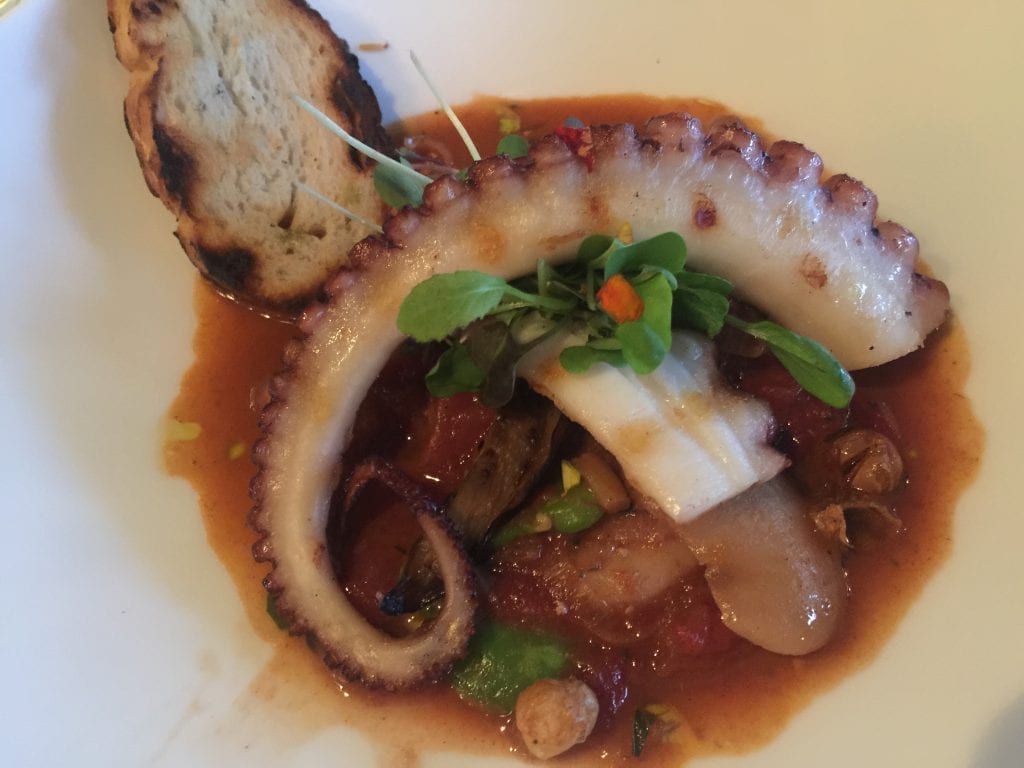 The octopus was grilled to perfection, served with curried Gigandes beans, grilled Japanese eggplant, roasted tomato and melted leeks – it all just melted in my mouth! So delicious – I am really into grilled octopus this Summer for some reason!