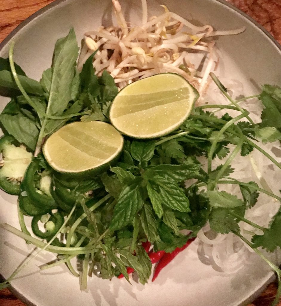 There are vegetarian options, gluten free options and every thing sounds amazing. There is even Pho on the menu! Pho Ga, Vietnamese chicken noodle soup with chicken dumplings and chicken farce. I didn’t know what a farce was either so, I did a little research. Apparently, it is a stuffing made of meat pureed with egg, bread, cream, or possibly all three.