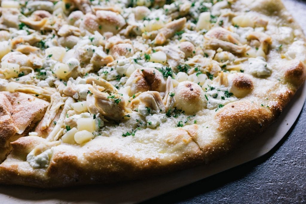 There are five pizzas to choose from, which may go up to six or seven in the future. The basics of course, like cheese and pepperoni, a veggie option, their BBQ chicken, and the fifth rotates – the x-factor of the night.