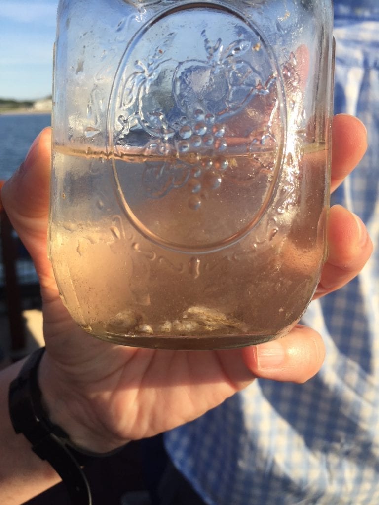 The Sea Gypsy is able to sail right up to Cottage City Oysters farm, which is the only oyster farm in the open water. Most Island farmed oysters are found in bays or large ponds. Dan and Greg were able to bring their boat right up to us.