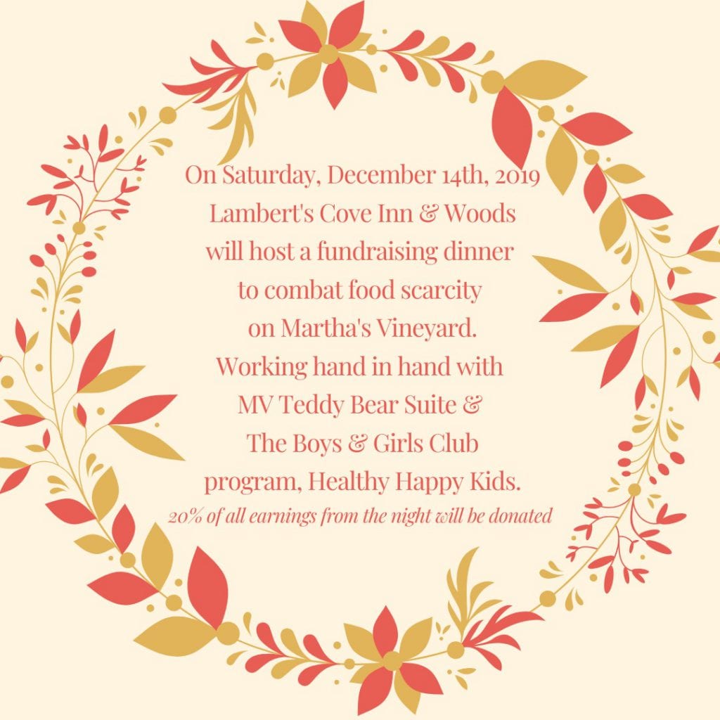 Please make your reservations today, call (800) 535-0272. Thank you for supporting Island children, all while having an incredible meal, in a very special Island place. Thank you WOODS at Lambert’s Cove Inn for your support!