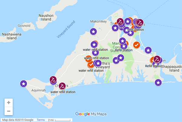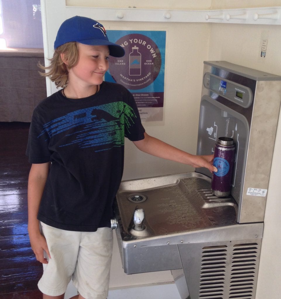 Because of an anonymous donor, you can find refill stations in all of the schools, the Boys & Girls Club, the MV Ice Arena, Edgartown & West Tisbury Town Hall, the Oak Bluffs & the West Tisbury Library, the Ag Hall, just to name a few. There are a number of others in the works too including other libraries, the VTA stop on Church Street, Ocean Park, Nancy’s Restaurant, and Post Office Square in Oak Bluffs.
