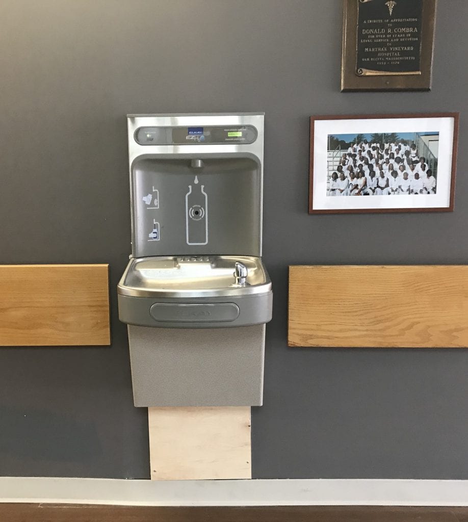 Also, a number of local businesses and organizations have taken it upon themselves to install their own refill station, recognizing the need to offer plastic free water. Such progressive places include the YMCA (take a look at how many plastic bottles have been prevented with this refill station next time – it’s mind blowing), the hospital (pictured below), the airport, Felix Neck, and the Tribal Community Center.