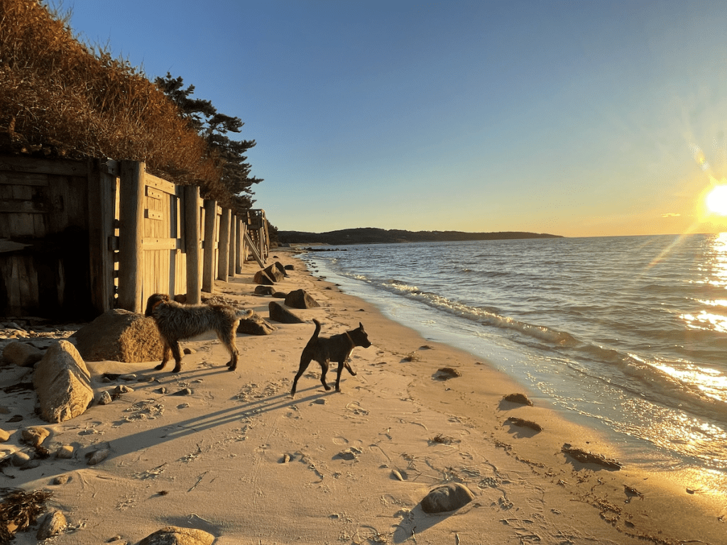 There is quite simply no greater joy than watching a dog abound down one of our local beaches, tail wagging, sun shining, living its best life! If you’ve never had the opportunity to bring your dog to Lambert’s Cove Beach in West Tisbury, it is an absolute must. In the summer months, it is a doggy paradise every morning from 7 to 10 am when dogs are allowed on the beach and off-leash. Expect dozens of adorable furry faces playing, swimming, and basking in their absolute freedom. During the slower months there are no restrictions, so assuming you have a well-behaved dog feel free to let it loose to enjoy this gem of the North Shore from October through May whenever you like. Several other beaches welcome dogs but their policies change from season to season, and some times require leashes while others can be unrestrained so be sure to take note when you arrive. Some of our other favorites include:
