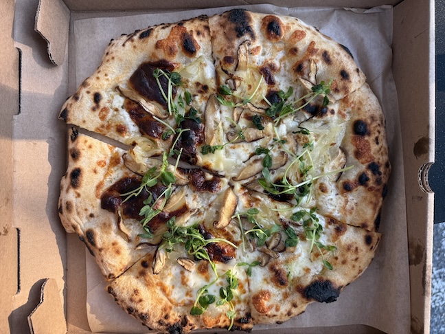 When I went to the Reunion pop-up at Nomans, I decided on the Fantastic Fungi with Ghost Island shiitake mushrooms, mozzarella, smoked gouda, finished with garlic cream, caramelized onions and fresh pea shoots. I love mushroom pizza and since my kids do not, I get it when ever possible. The pizza was so well balanced, light and delicious.