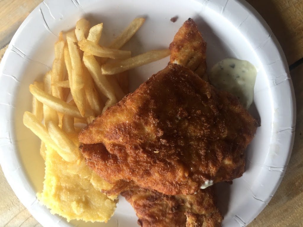 The fish fry was really good. A little salt, and it was yummy. It was lightly fried and tasted fresh and homemade. My kids had seconds. They loved it, and frequently ask about going again. With all that fish eaten, they were able to enjoy the chocolate cake that was offered for dessert. They were in heaven. A definite parenting win for me, and a great new discovery for a dinner option in Oak Bluffs.