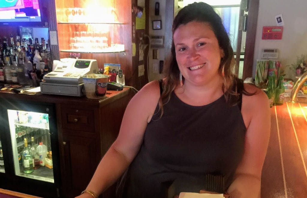 We piled our plates high and went through to the back bar so I could grab a beer. My friend Gillian was at the bar, and though busy, she had a moment for a smile and a quick chat. Turns out there’s a good selection of beers and cocktail options, and the drinks happen to be the most affordable on the Island.